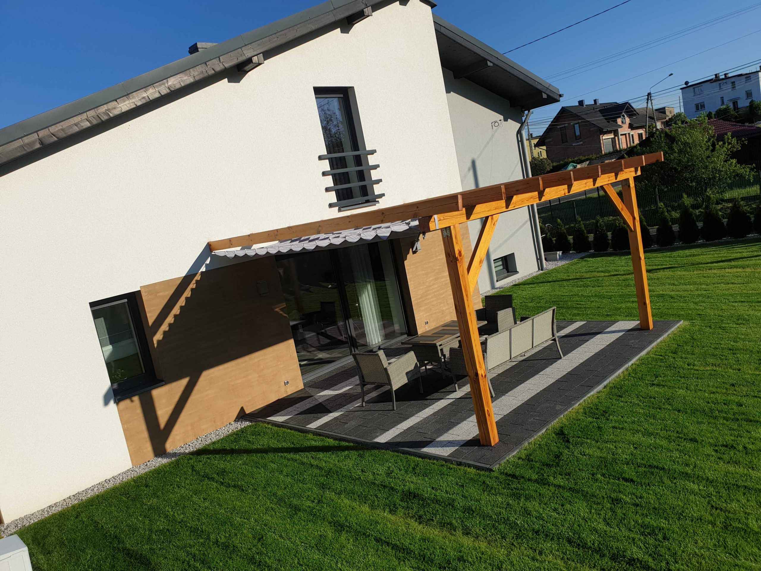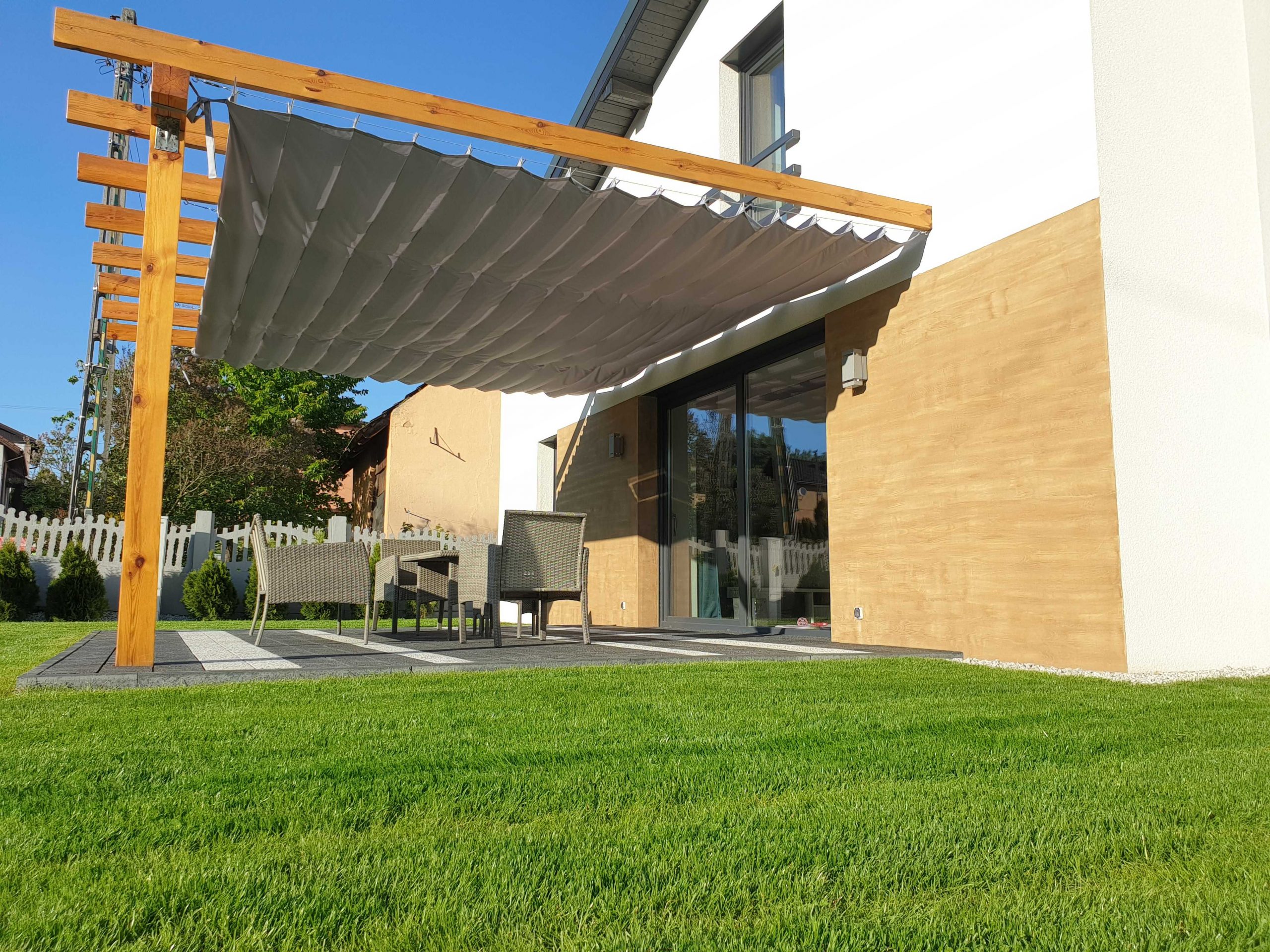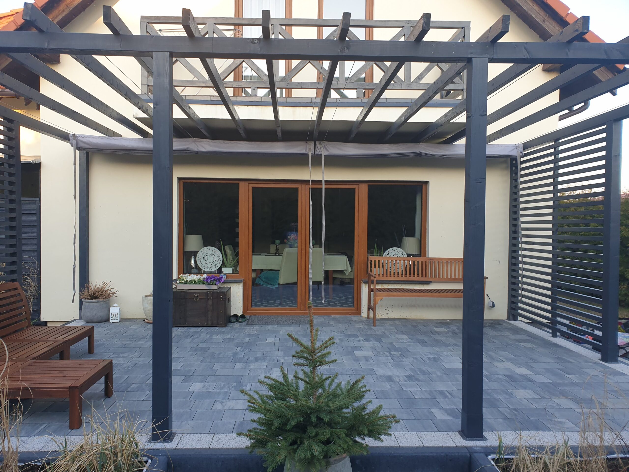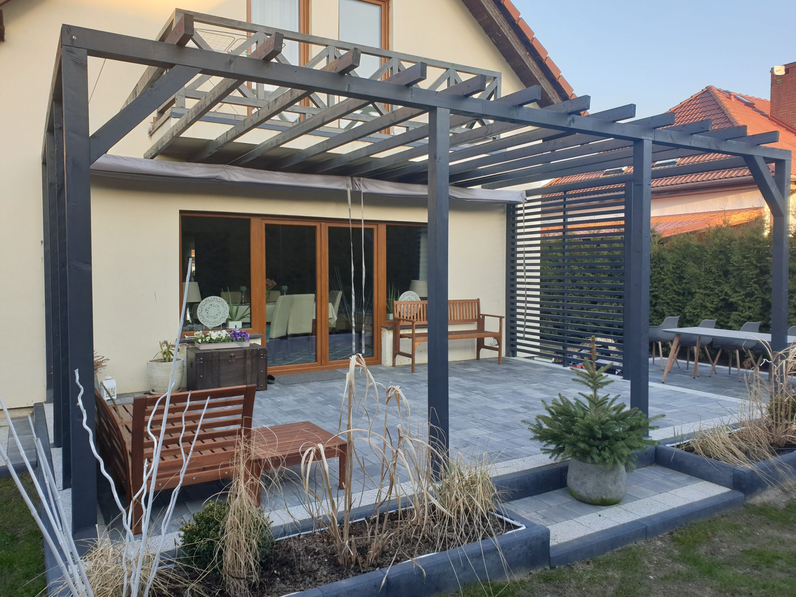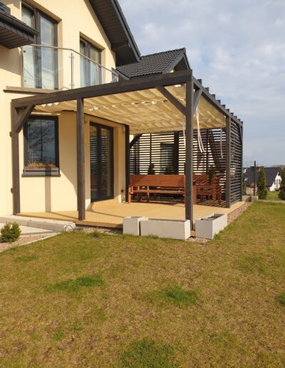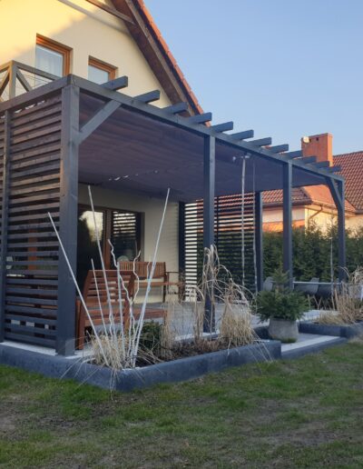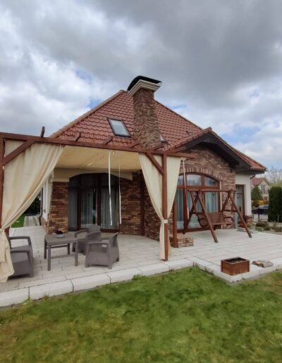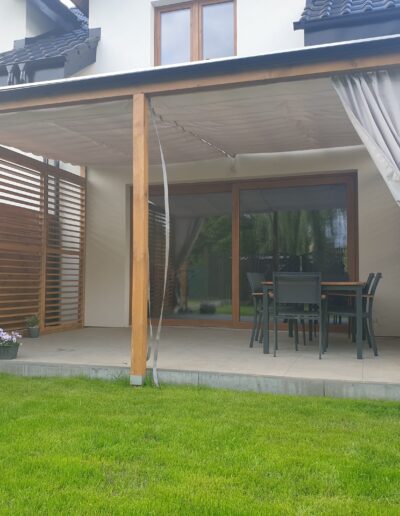 Ochrona przed słońcem i ciepłem: Trwałe zasłony tarasowe zapewniają skuteczną ochronę przed promieniami słonecznymi oraz nadmiernym nagrzewaniem, co umożliwia komfortowe korzystanie z tarasu nawet w najgorętsze dni.