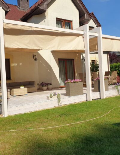 Oferujemy przesuwane zasłony tarasowe oraz zadaszenia tarasów. Chroniące przed promieniami słonecznymi, są odporne na wodę.