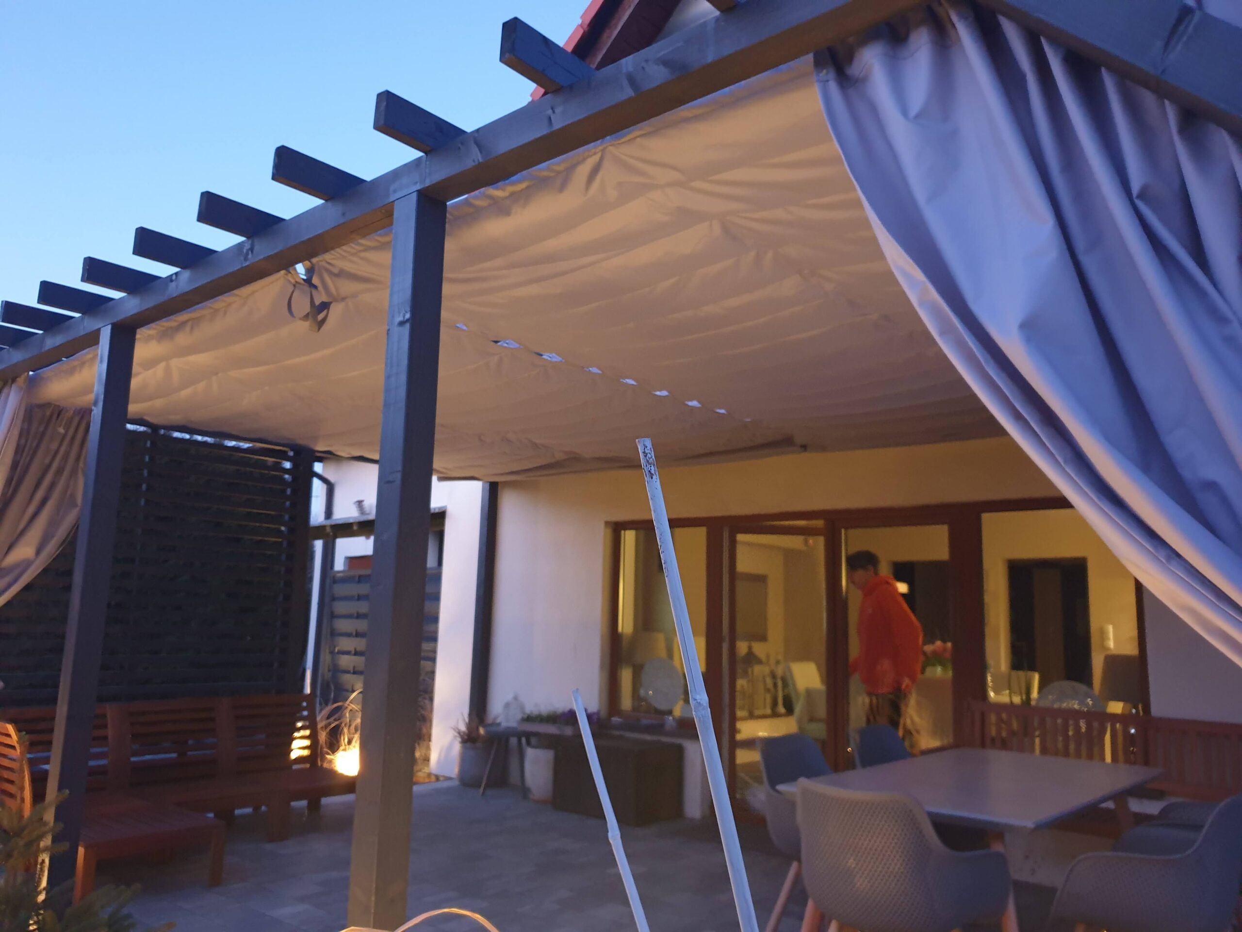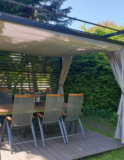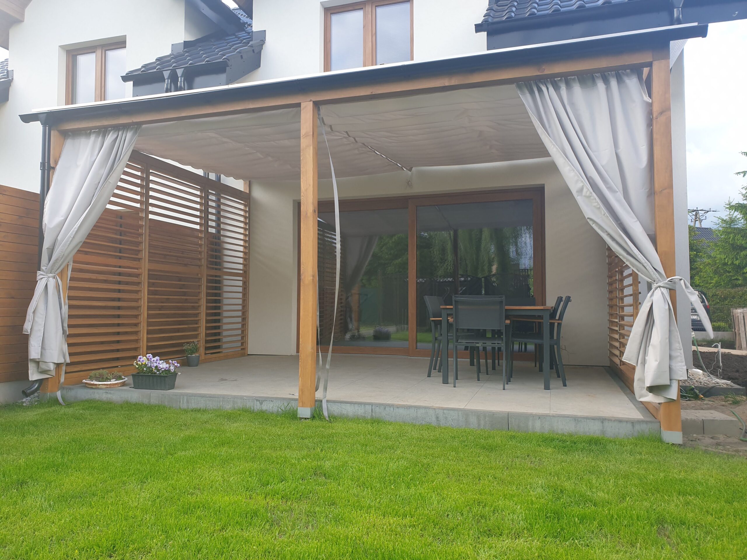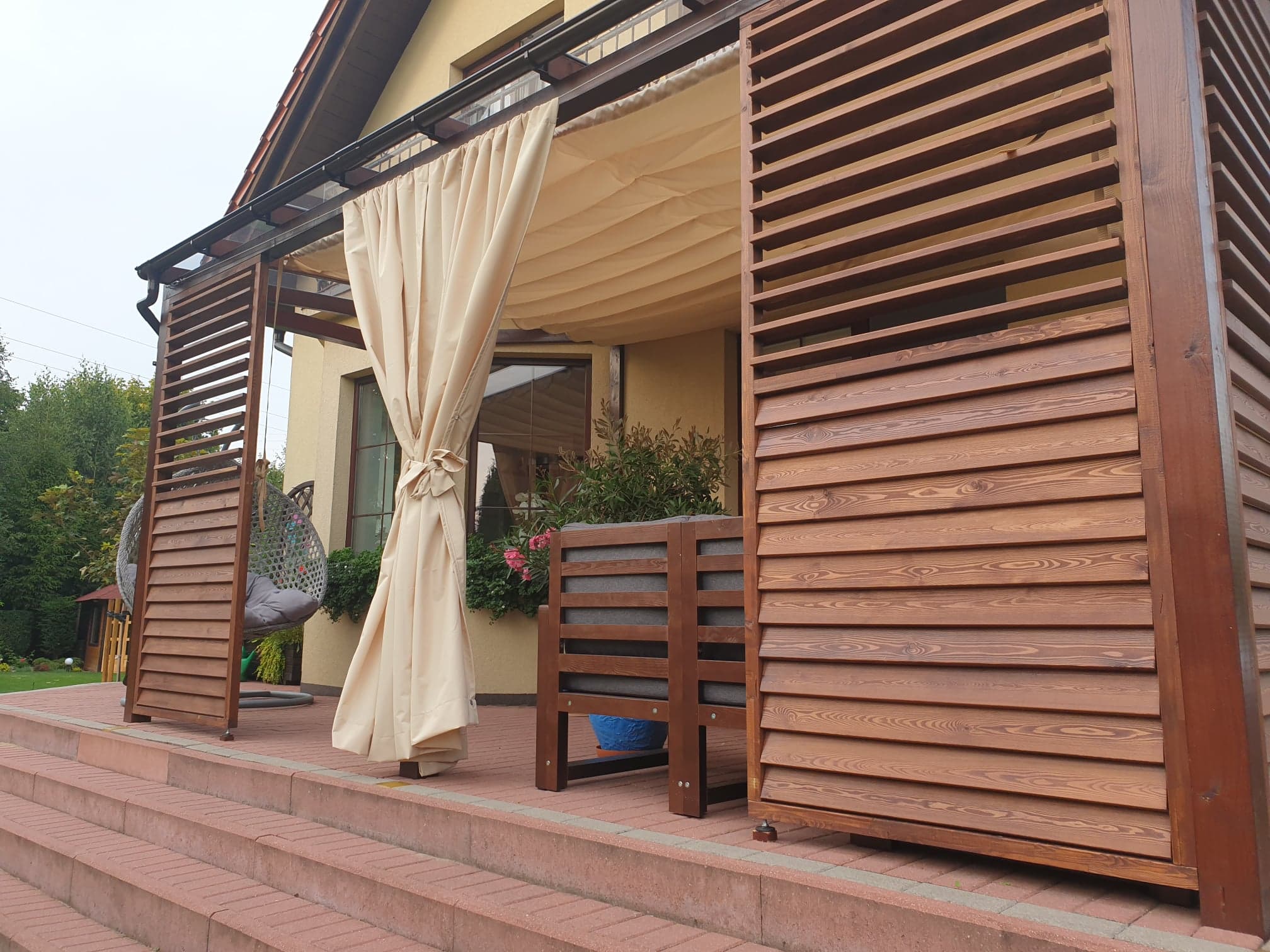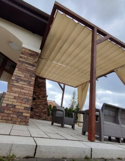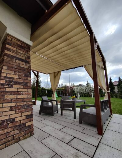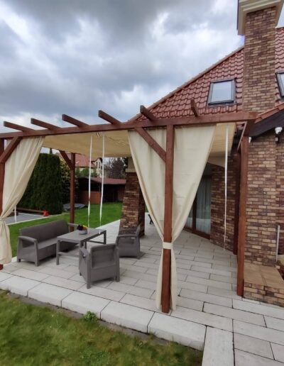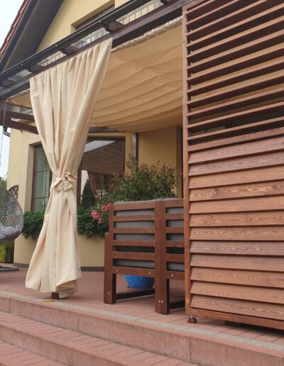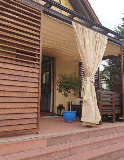 - Zasłony które można zamówić do kompletu chronią również przed wiatrem.
