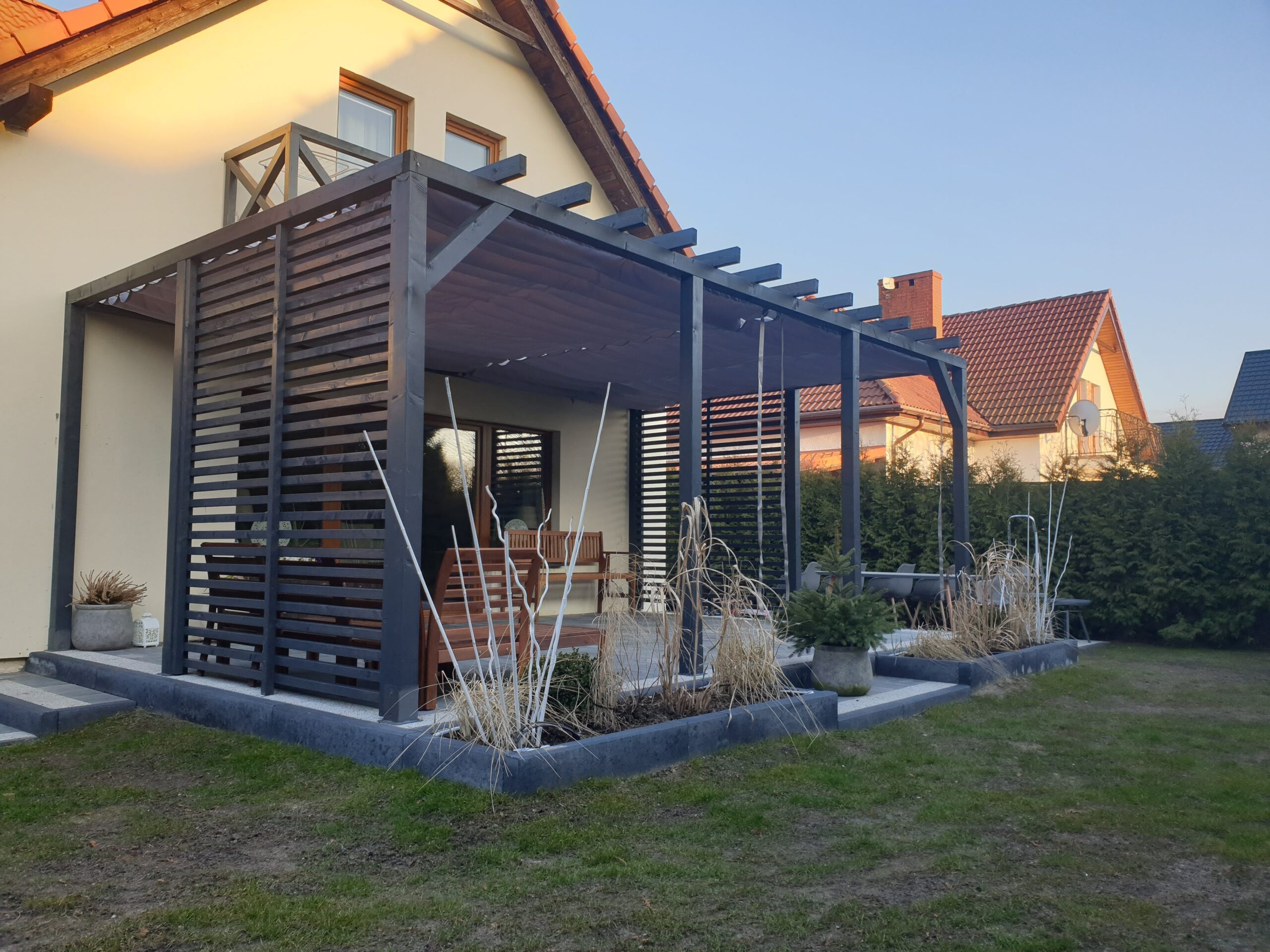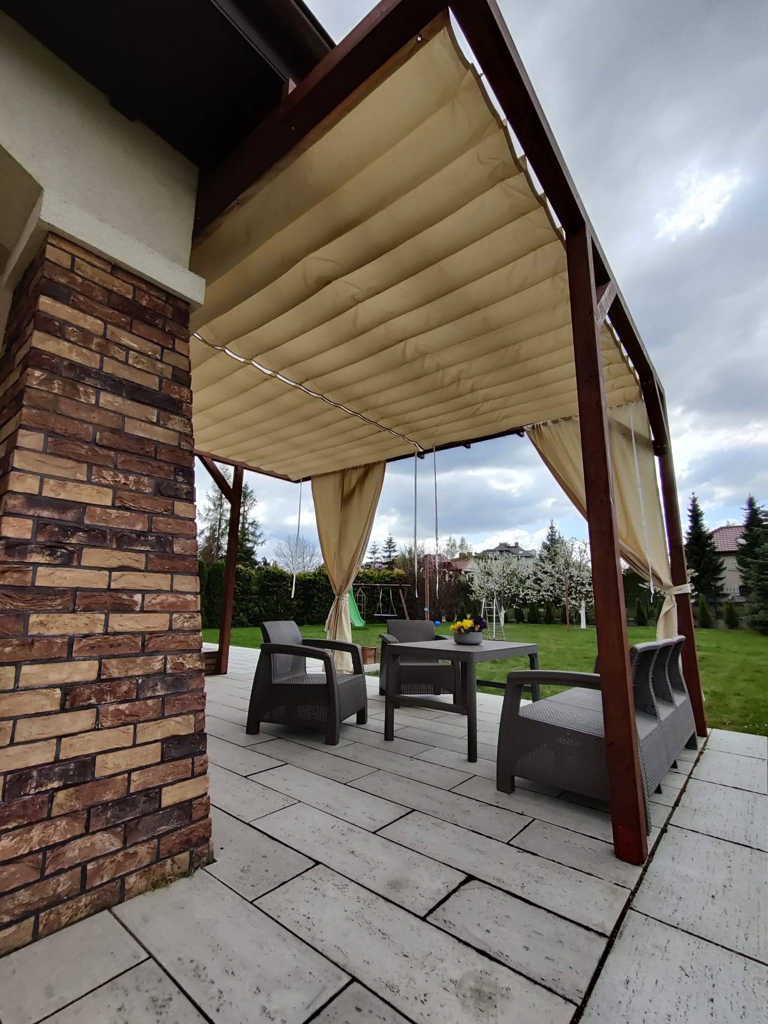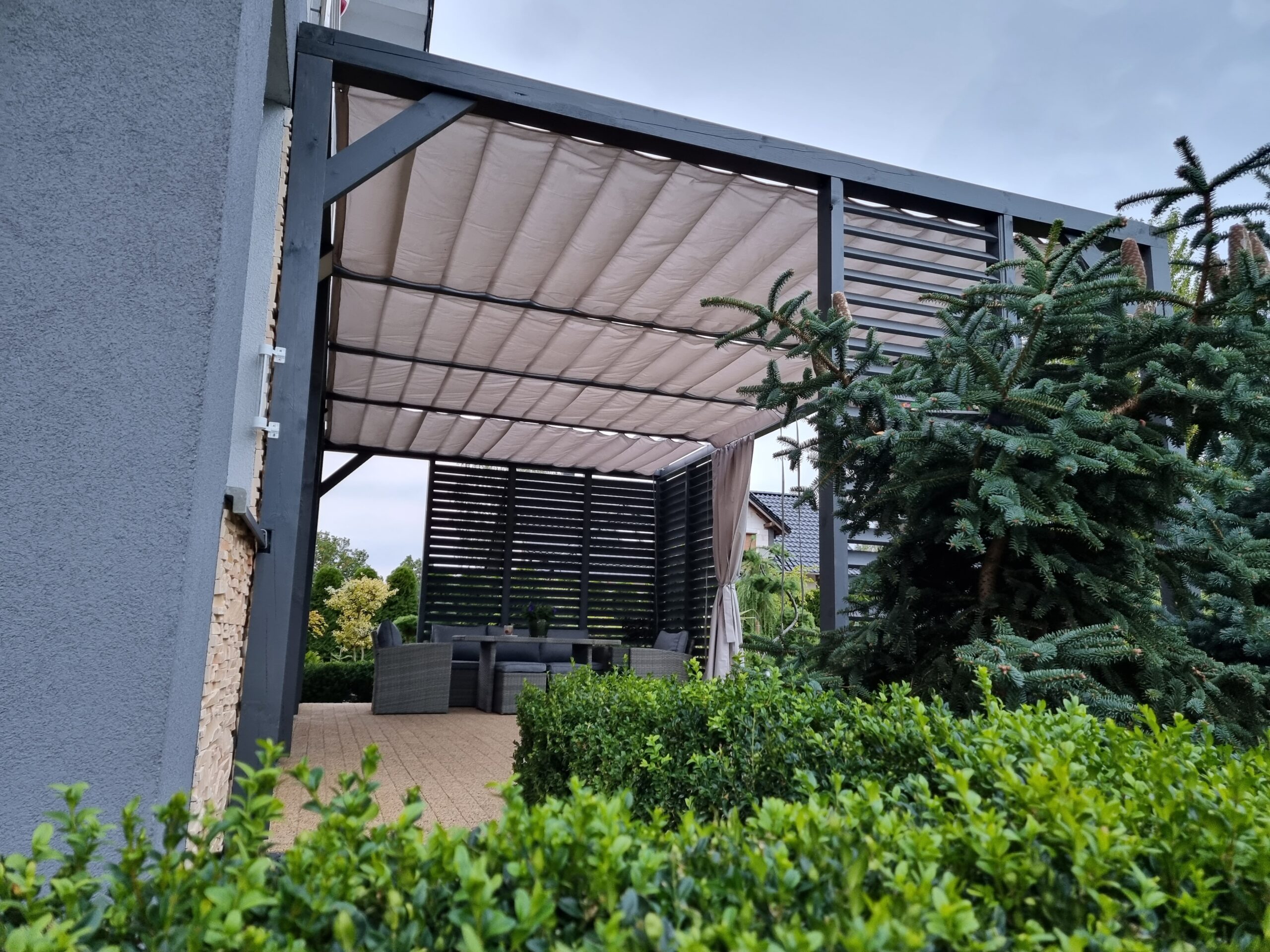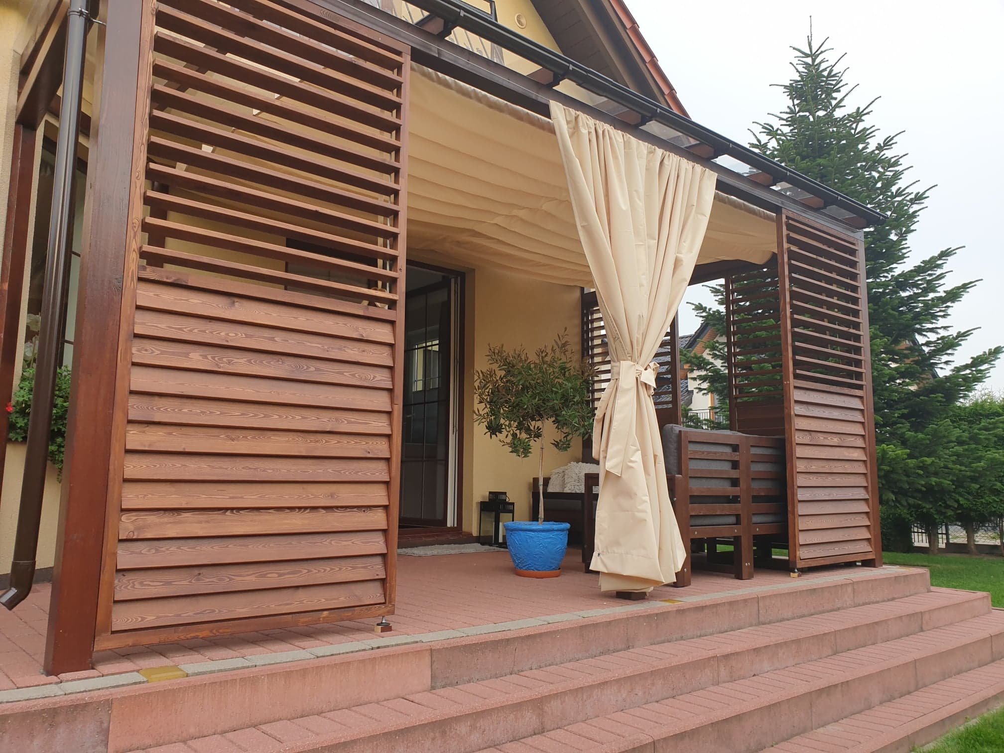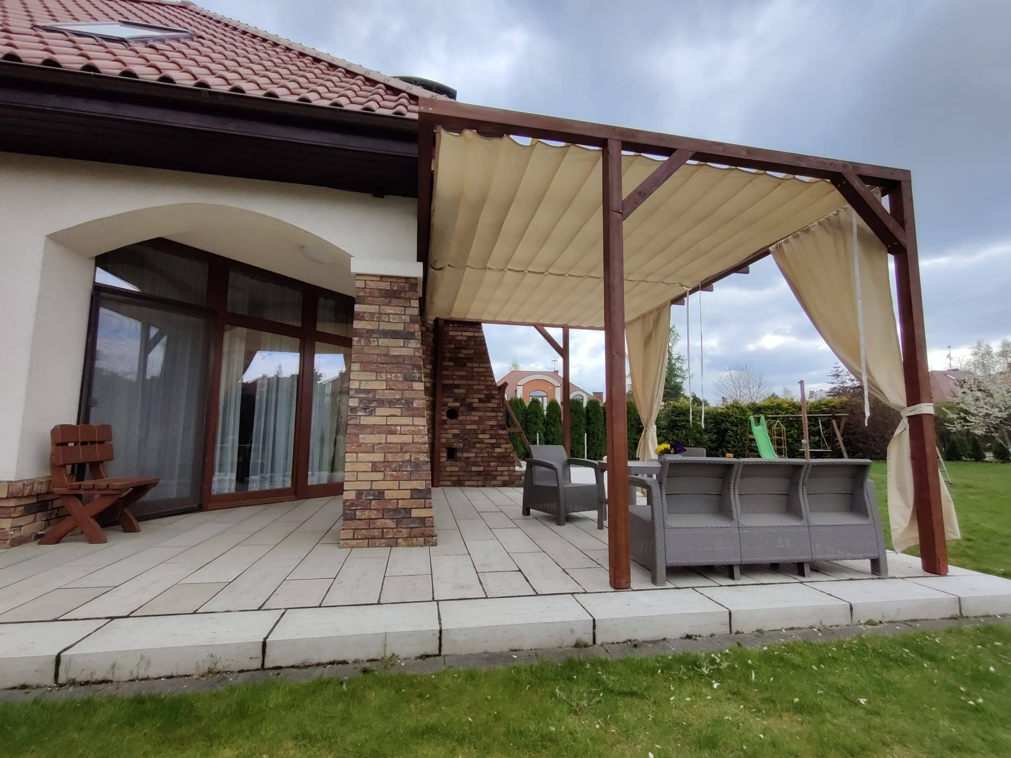 - Zasłony które można zamówić do kompletu chronią również przed wiatrem.