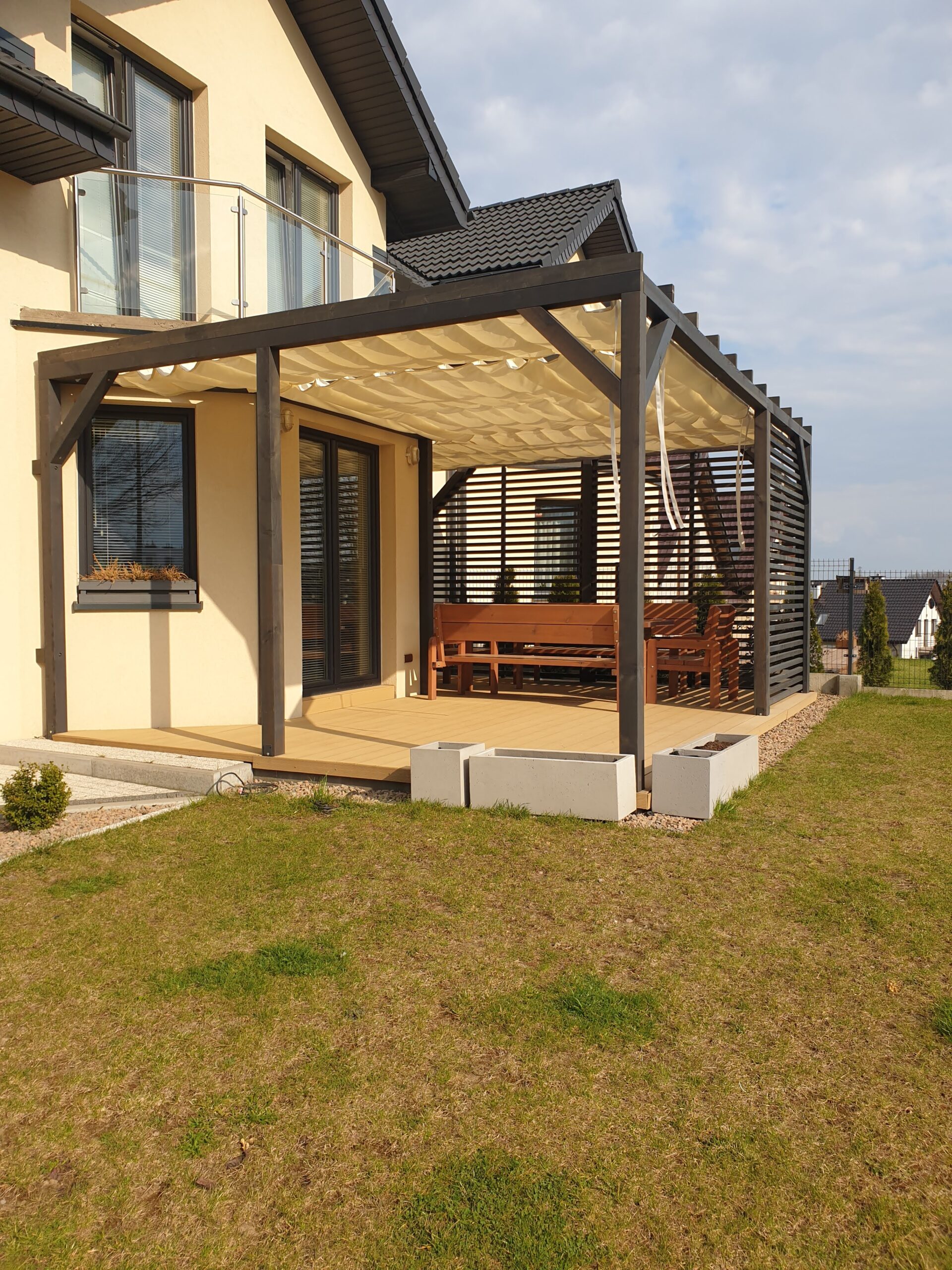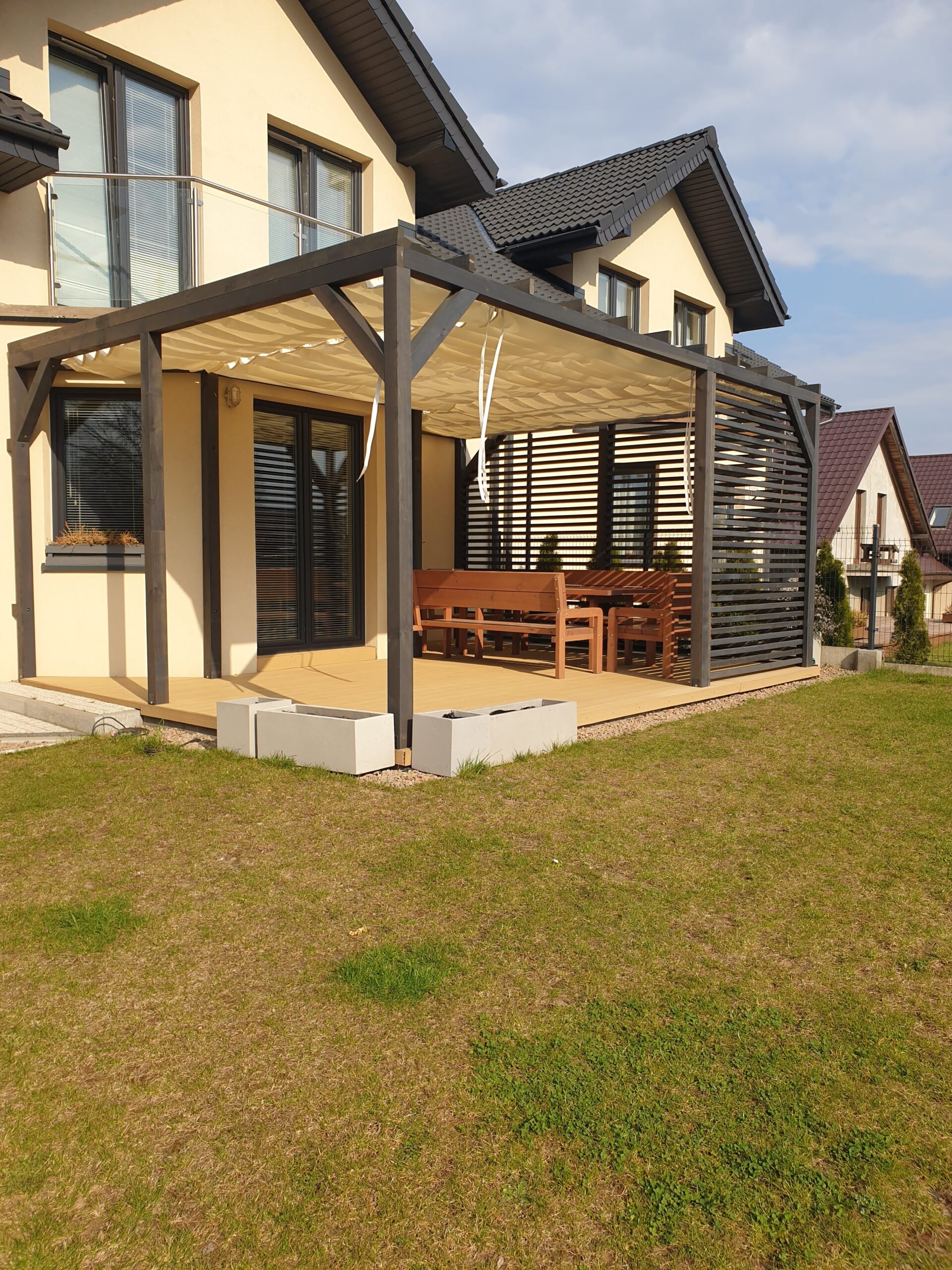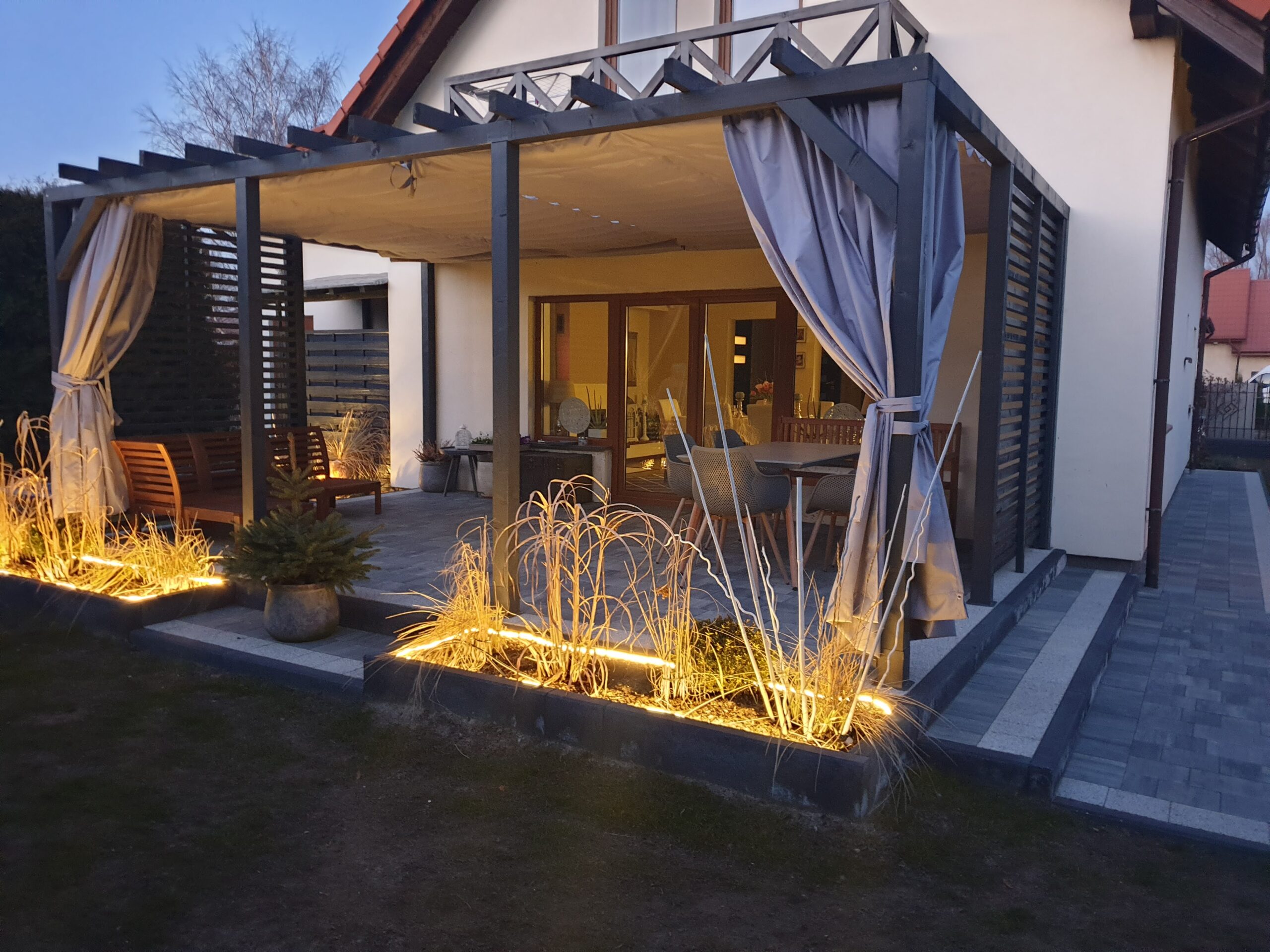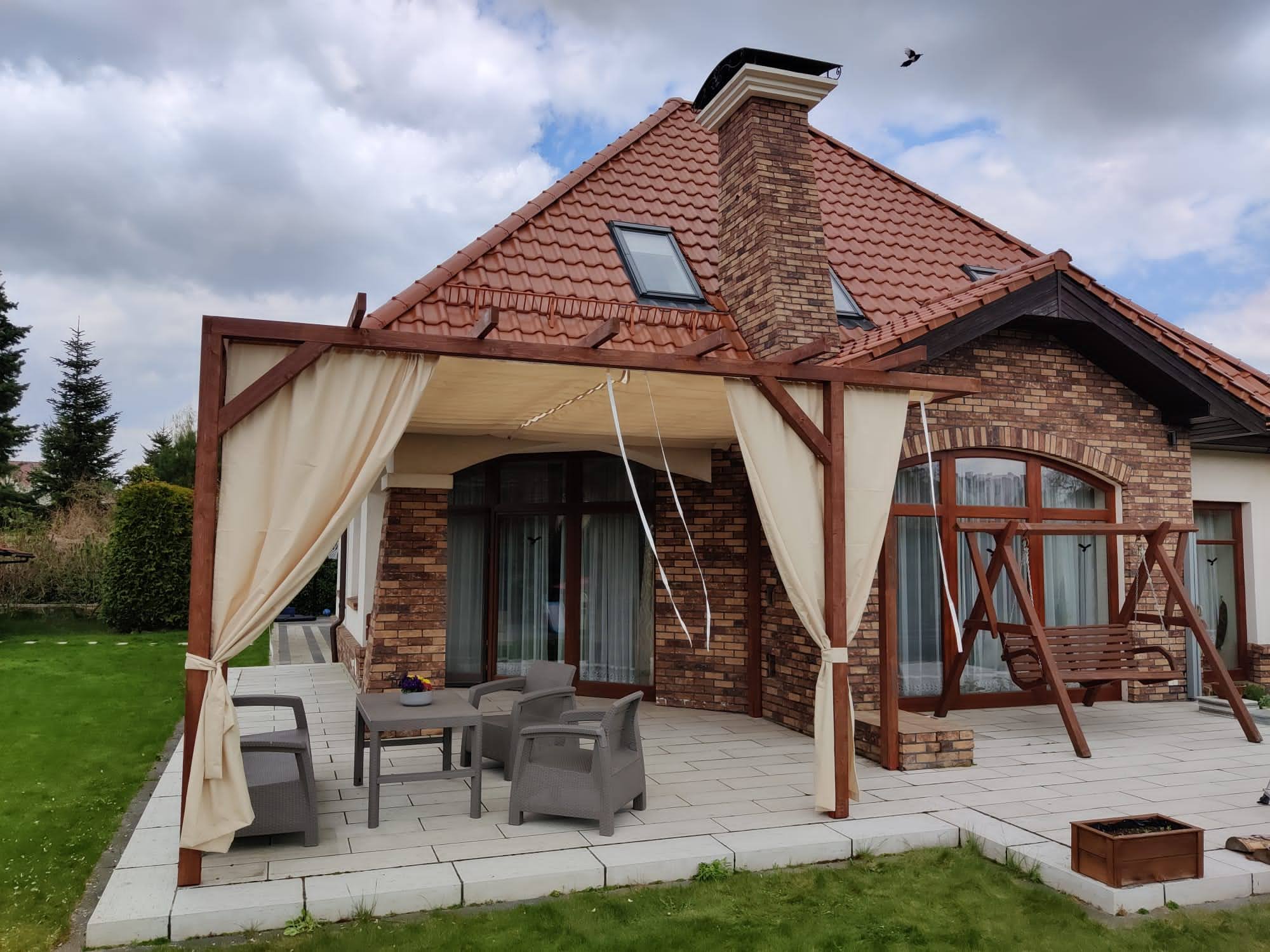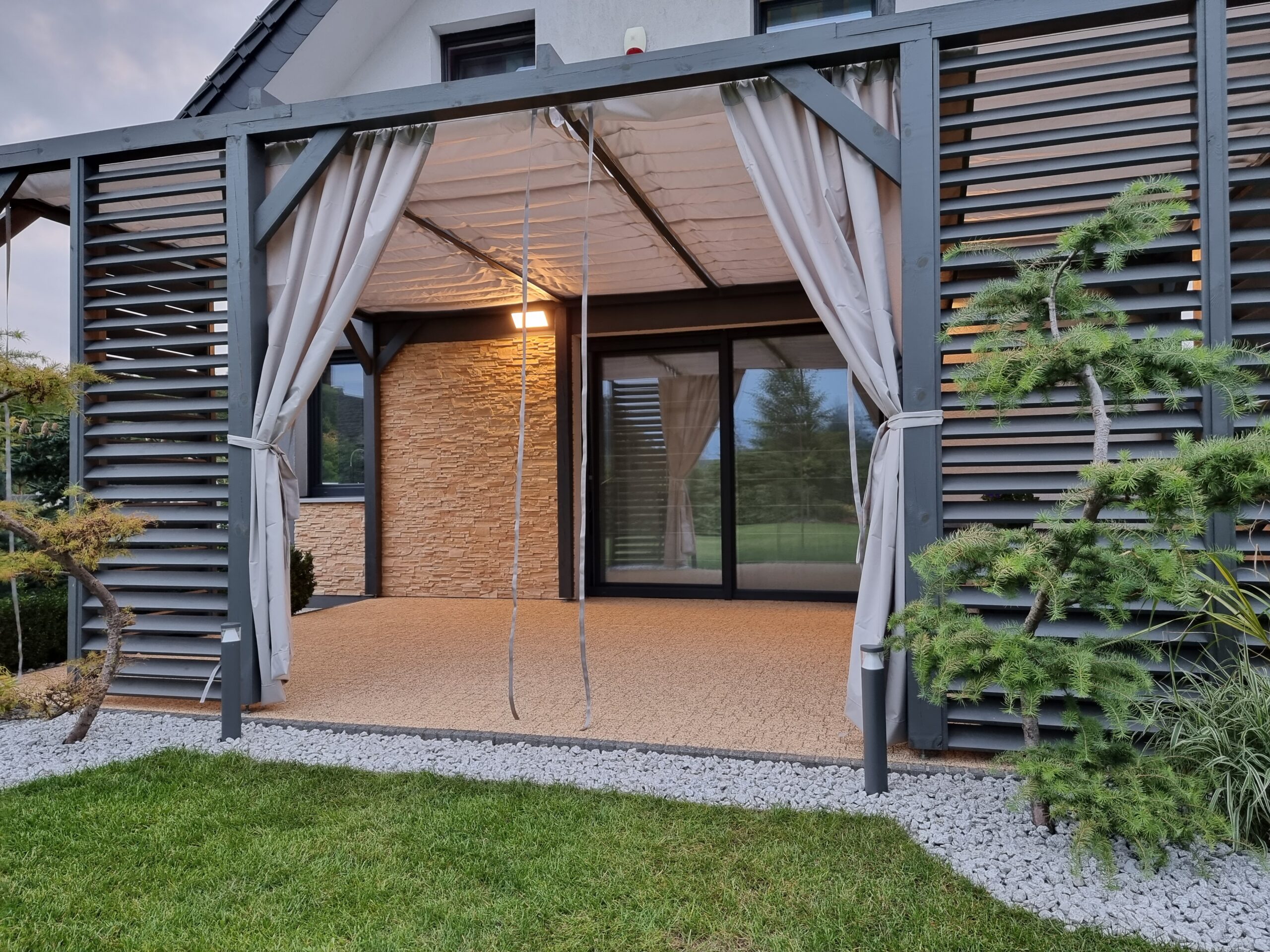 - Zasłony które można zamówić do kompletu chronią również przed wiatrem.