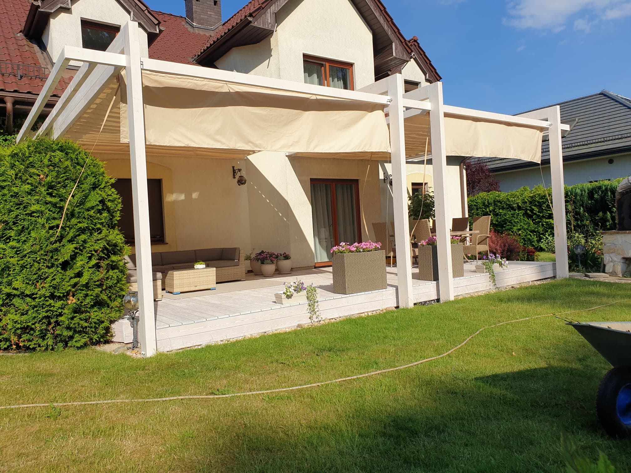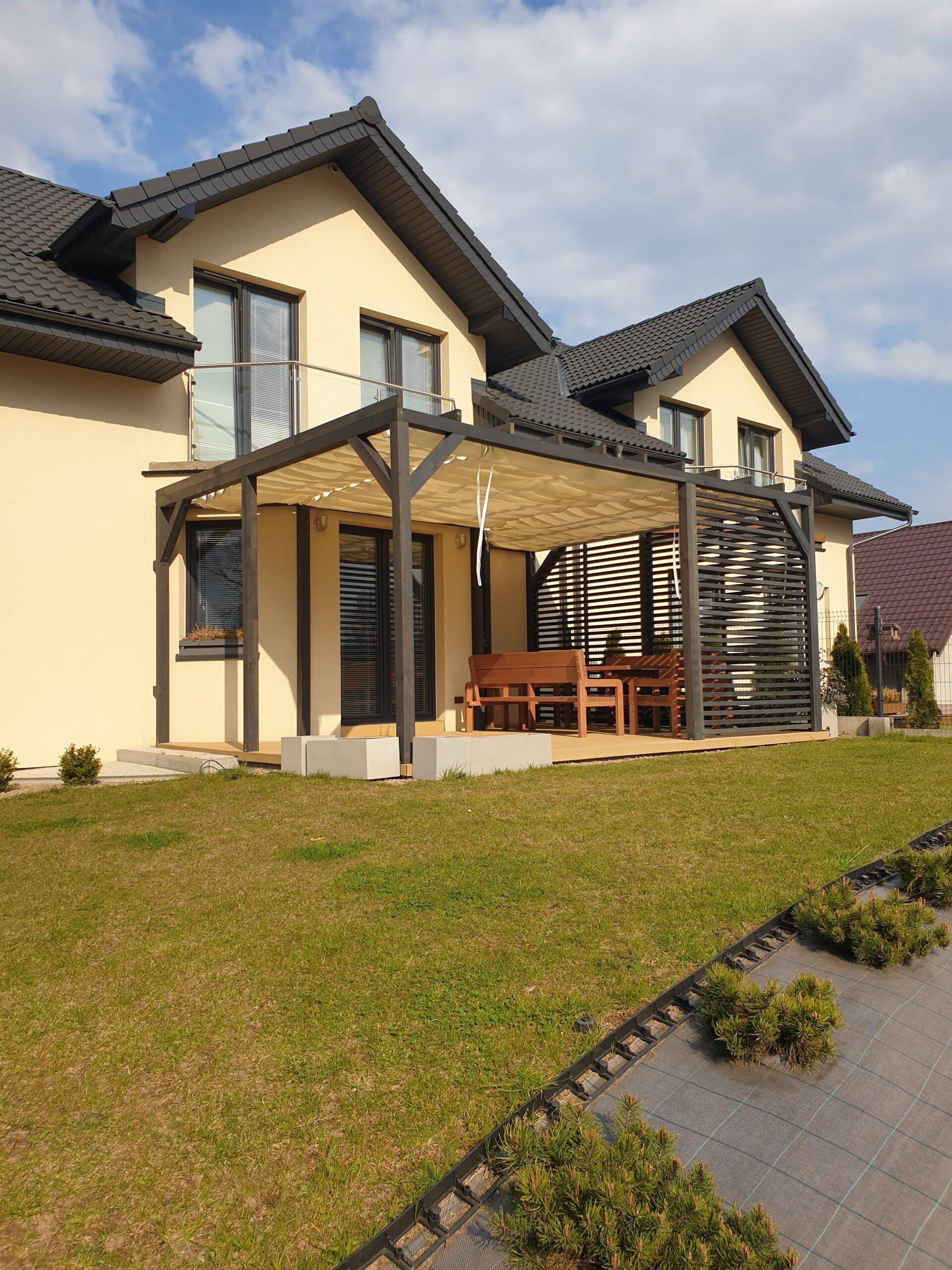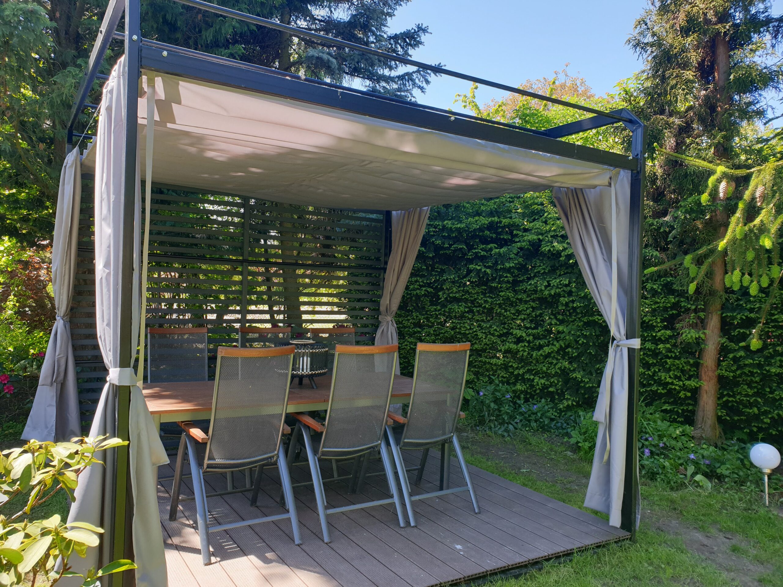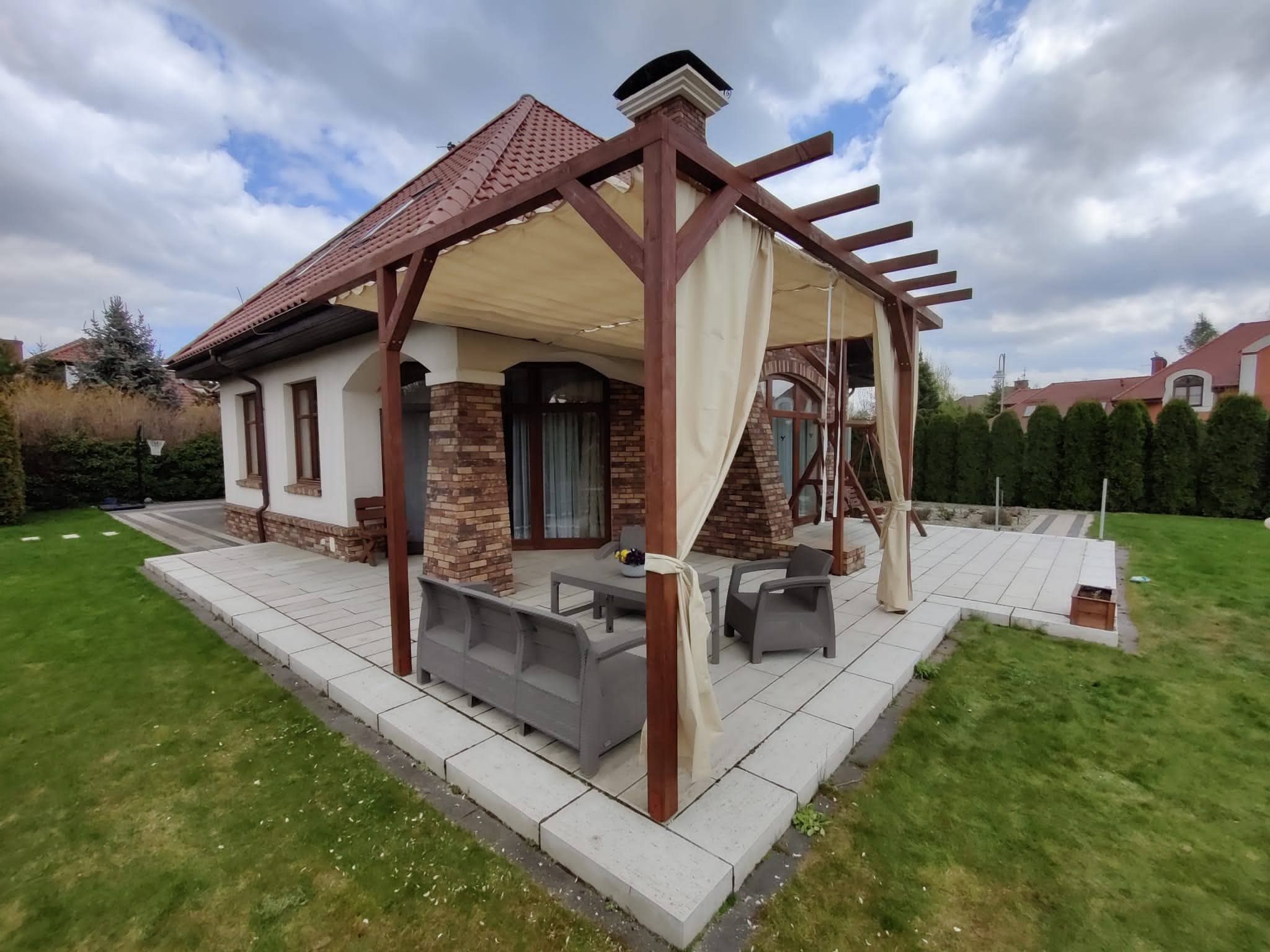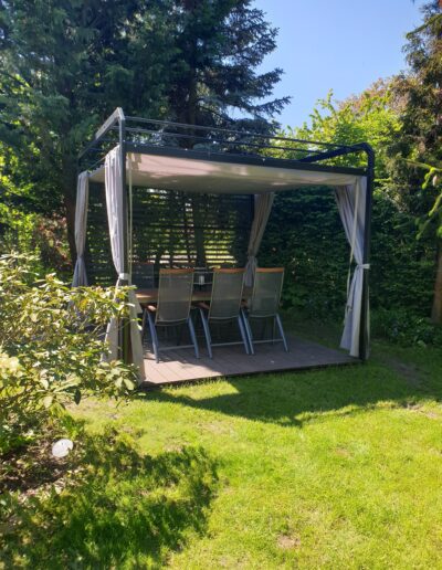 - Zasłony które można zamówić do kompletu chronią również przed wiatrem.