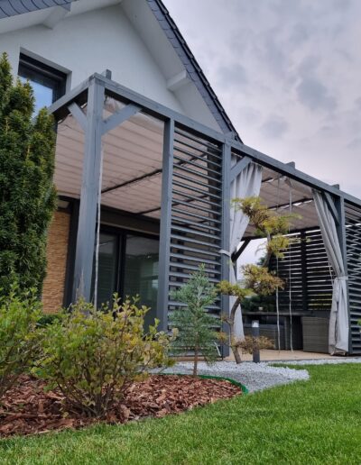 Dostosowanie do potrzeb: Zasłony tarasowe najwyższej jakości mogą być dostosowane do indywidualnych potrzeb klienta, możemy przygotować je na wymiar.