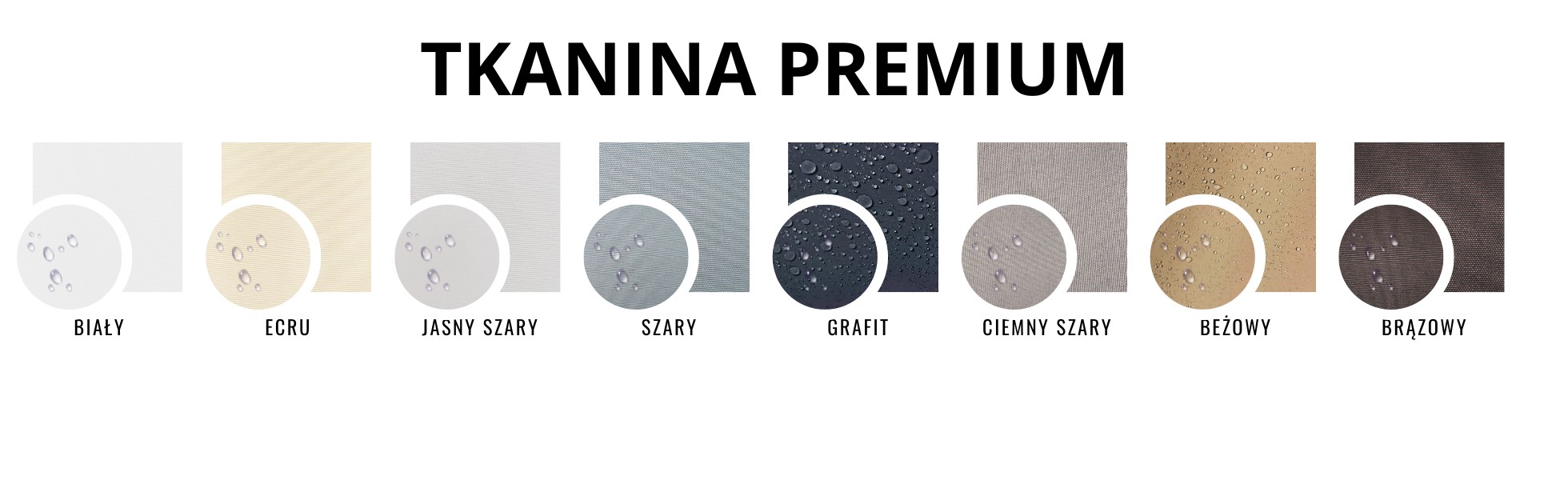 - oferujemy 8 kolorów do wyboru zasłon tarasowych typu premium: biały, ecru, jasny szary, szary, grafit, ciemny szary, beżowy, brązowy,