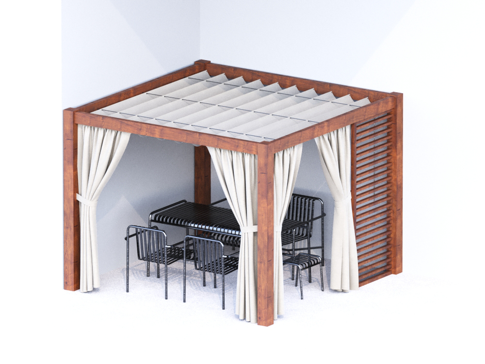 - Zasłony które można zamówić do kompletu chronią również przed wiatrem.